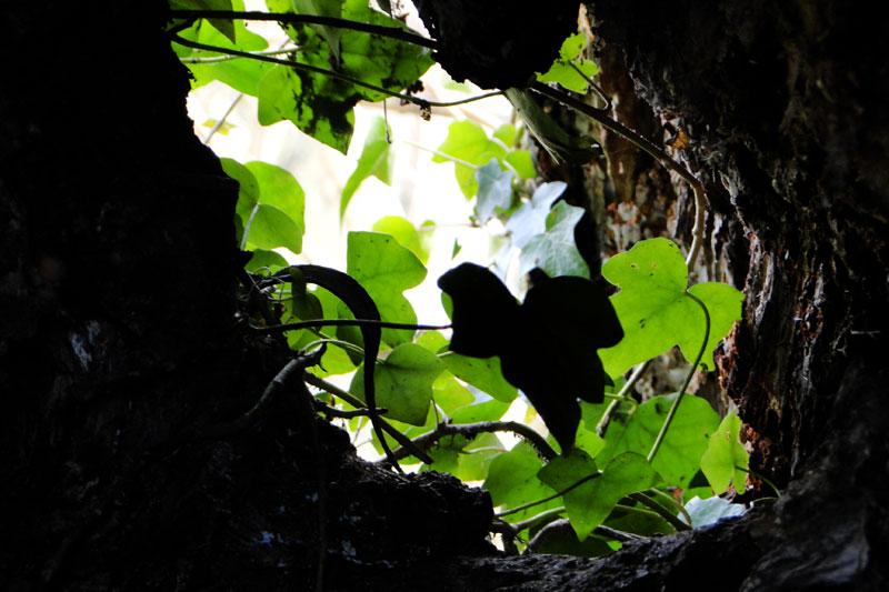 We hear quite a few owls at night (many of whom sound like they’re actually sat on our windowsill, it’s so loud!) So any suitable looking owl homes we try and have a peak (those near the ground that is) This one did have a surprise, not an owl but a lovely splash of green.
