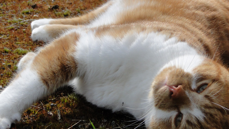 Sister and brother, who decided to forgo their feral life and turn to one of sleeping on top of a tumble dryer, hanging out with dogs and following their adopted humans around the garden.